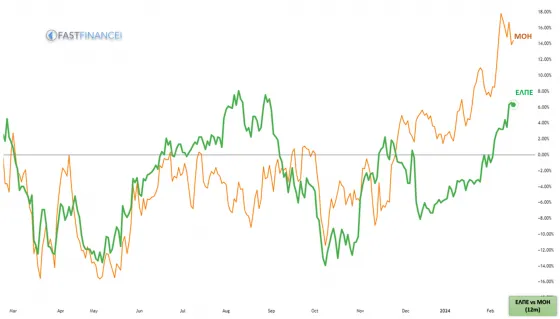 Αυτό μπορεί να έχει δύο μεταφράσεις. Η μία σχετίζεται με την προσδοκία των επενδυτών ότι στο βραχυπρόθεσμο, η ΜΟΗ θα παραδώσει καλύτερα θεμελιώδη, ή απλά βελτίωσε κατά τί τη θέση της έναντι των ΕΛΠΕ. H δεύτερη σχετίζεται με την κατά καιρούς απόκλιση των δύο μετοχών, όπως φαίνεται και στα διαγράμματα, η οποία με τον έναν ή τον άλλον τρόπο συρρικνώνεται, Εξάλλου, οι δύο μετοχές εναλλάσσονται σε υπερ-υποαποδόσεις συχνά πυκνά.