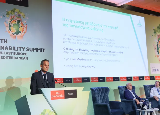 Στην προσήλωση της ΔΕΠΑ Εμπορίας στη βιώσιμη ενεργειακή μετάβαση και την «πράσινη» επιχειρηματικότητα αναφέρθηκε ο Διευθυντής Δραστηριοτήτων Λειτουργικής Υποστήριξης & Επικοινωνίας κος Δημήτριος Μανώλης, συμμετέχοντας στο 5ο Sustainability Summit για τη ΝΑ Ευρώπη και τη Μεσόγειο, που πραγματοποιήθηκε την 1η Οκτωβρίου 2021 στο πλαίσιο των Economist Events.