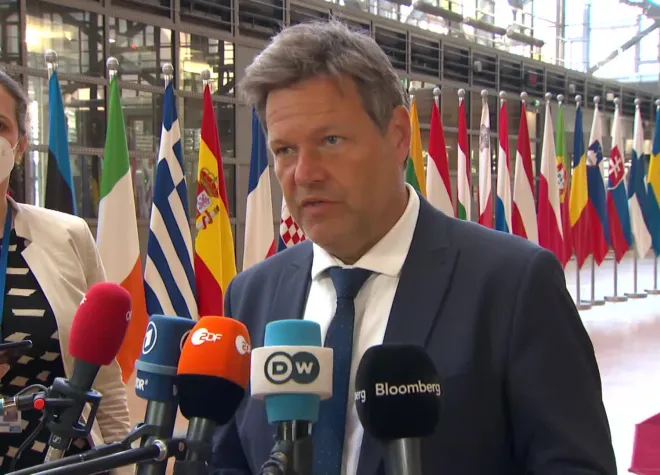 "Η Γερμανία δεν είναι αντίθετη με ένα εμπάργκο πετρελαίου από τη Ρωσία", δήλωσε σήμερα από τις Βρυξέλλες ο Αντιγκαγκελάριος της Γερμανίας και Υπουργός Οικονομίας και Προστασίας του Κλίματος, Ρόμπερτ Χάμπεκ, προσερχόμενος στο έκτακτο Συμβούλιο Υπουργών Ενέργειας της ΕΕ.