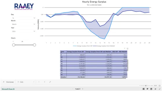 Προς επίρρωση επισυνάπτουμε σχετικό διάγραμμα από το εργαλείο παρακολούθησης αγορών της ΡΑΑΕΥ, όπου για λ.χ. την 16/3/25 φαίνεται απόκλιση 1 GW πρόσθετο πλεόνασμα ισχύος από την ΔΕΠ σε σχέση με το πρόγραμμα αγοράς. Η απόκλιση αυτή είναι τεράστια για να «βαφτίζεται» ανακατανομή, αν εφαρμοστεί η εισήγηση της ΟΔΕ ως έχει.