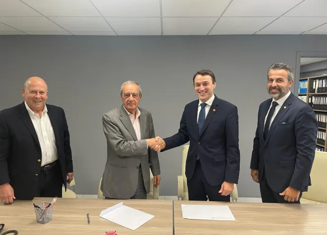 Λεζάντα συνημμένης φωτογραφίας: Από αριστερά οι κ.κ. Θ. Λαμνίδης (Lamnidis Law), Α.Σγαρδέλης, διευθύνων σύμβουλος της Metaloumin, Κωνσταντίνος Ζυγούρας (group chairman της SUNEL) και Μίλτος Ζυγούρας (vice chairman της SUNEL).