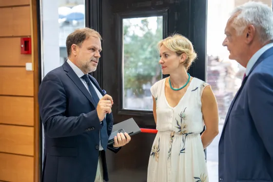H Υφυπουργός κα Σδούκου δήλωσε: «Η σημερινή ημέρα είναι πολλαπλά σημαντική. Αφενός, επειδή γίνεται το πρώτο επίσημο βήμα μετά την ψήφιση του Ν. 4964/2022 για την ανάπτυξη της υπεράκτιας αιολικής τεχνολογίας στις ελληνικές θάλασσες. Αυτό το πρώτο βήμα θα ακολουθήσουν πολλά ακόμα, και πολύ σύντομα, ώστε να επιτευχθεί ο στόχος που θέσαμε όταν εκπονήσαμε το πλαίσιο των υπεράκτιων: να καταστεί η Ελλάδα πρωτοπόρος στην ανάπτυξη υπεράκτιας αιολικής ενέργειας στη Νοτιοανατολική Ευρώπη και, παράλληλα, να δημιουργήσει ισχυρή εγχώρια εφοδιαστική αλυσίδα, ενισχύοντας την εθνική οικονομία, δημιουργώντας νέες και καλοπληρωμένες θέσεις εργασίας και αυξάνοντας την εγχώρια προστιθέμενη αξία. Αφετέρου, θυμίζω ότι το 2022 ορίσαμε στο Νόμο ότι η θαλάσσια περιοχή της Αλεξανδρούπολης θα φιλοξενήσει τα πρώτα, πιλοτικά έργα υπεράκτιας αιολική ςενέργειας στο πλαίσιο του ευρύτερου στρατηγικού μας οράματος για τη μετατροπή της ακριτικής αυτής περιοχής της Ελλάδας σε διεθνή ενεργειακό και γεωπολιτικό κόμβο. Εκείνη μας η απόφαση αποκτά και μια πρόσθετη, άκρως επίκαιρη και αναγκαία, αναπτυξιακή διάσταση αφού, μετά τις δραματικές πυρκαγιές του καλοκαιριού, η προσέλκυση επενδύσεων τέτοιου μεγέθους σε αυτήν την καινοτόμο τεχνολογία παραγωγής «καθαρής» ενέργειας θα αποτελέσει μια ακόμα ψηφίδα στο μωσαϊκό της πλήρους ανασυγκρότησης και ανάπτυξης της περιοχής της Αλεξανδρούπολης».