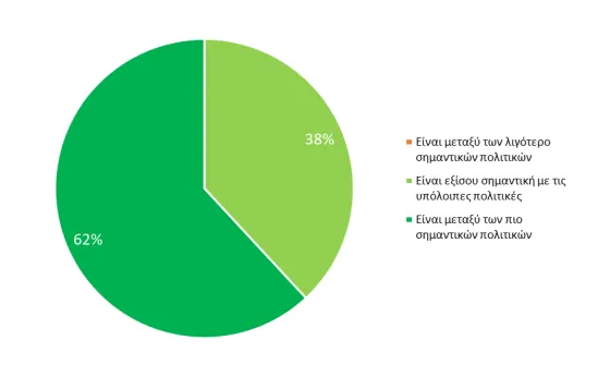 Μεταξύ όσων απάντησαν από 7 κόμματα, παρατηρείται σχεδόν ομοφωνία (>86%) ότι η αιολική ενέργεια είναι απολύτως απαραίτητη (ι) για την Ενεργειακή ασφάλεια και ανεξαρτησία της Ελλάδας και (ιι) για τη Μείωση του κόστους ενέργειας για τις επιχειρήσεις και τα νοικοκυριά. Όλοι θεωρούν ότι ο ευρωπαϊκός στόχος για κλιματική ουδετερότητα το 2050 είναι αναγκαίος. Όλοι επίσης τοποθετούν την αιολική ενέργεια μεταξύ των πιο σημαντικών πολιτικών για την ενέργεια και το κλίμα ή ως εξίσου σημαντική με τις άλλες πολιτικές.