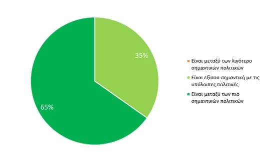 Μεταξύ όσων απάντησαν από 7 κόμματα, παρατηρείται σχεδόν ομοφωνία (>87%) ότι η αιολική ενέργεια είναι απολύτως απαραίτητη (ι) για την Ενεργειακή ασφάλεια και ανεξαρτησία της Ελλάδας και (ιι) για τη Μείωση του κόστους ενέργειας για τις επιχειρήσεις και τα νοικοκυριά. Όλοι θεωρούν ότι ο ευρωπαϊκός στόχος για κλιματική ουδετερότητα το 2050 είναι αναγκαίος. Όλοι επίσης τοποθετούν την αιολική ενέργεια μεταξύ των πιο σημαντικών πολιτικών για την ενέργεια και το κλίμα ή ως εξίσου σημαντική με τις άλλες πολιτικές.