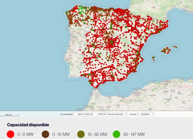Μόνο έξι επαρχίες διατηρούν διαθέσιμη χωρητικότητα άνω του 50%: τα Νησιά Μπαλεαρίδες, Ourense, Pontevedra, Las Palmas, Asturias και Lugo. Ωστόσο, μέρος αυτής της υποτιθέμενης «πλεονάζουσας» ισχύος περιορίζεται από τεχνικούς περιορισμούς ή εξαρτάται από εκκρεμείς αναβαθμίσεις του δικτύου μεταφοράς.