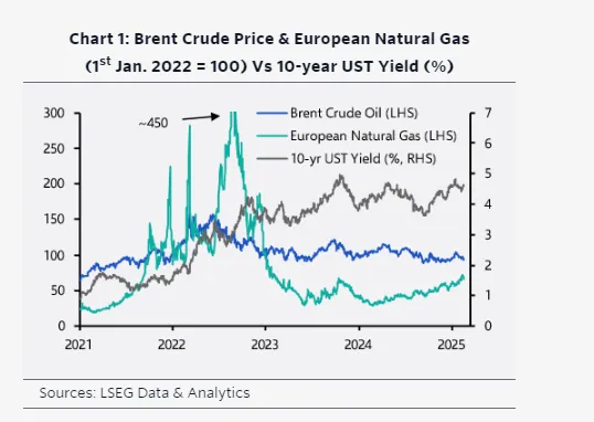 Στην πραγματικότητα, η εκτίμησή της είναι ότι μια ειρηνευτική συμφωνία θα είχε περιορισμένο αντίκτυπο στις αγορές πετρελαίου, καθώς η Ρωσία εξακολουθεί να εξάγει πετρέλαιο σε μεγάλο βαθμό σύμφωνα με την ποσόστωσή της στο πλαίσιο του ΟΠΕΚ+ (απλώς όχι απευθείας σε δυτικούς αγοραστές). Υπάρχουν ίσως μεγαλύτερα περιθώρια για περαιτέρω πτώση των τιμών του φυσικού αερίου εάν οι εξαγωγές ρωσικών αγωγών προς την Ευρώπη αυξηθούν ξανά. Και ακόμη και απουσία ειρηνευτικής συμφωνίας, η άποψή της είναι ότι οι τιμές του πετρελαίου και του φυσικού αερίου θα μειωθούν τα επόμενα δύο χρόνια λόγω της άφθονης παγκόσμιας προσφοράς. Καθώς η παγκόσμια χωρητικότητα LNG αναμένεται να επεκταθεί σημαντικά τα επόμενα δύο χρόνια, αναμένει ότι η ευρωπαϊκή τιμή φυσικού αερίου θα μειωθεί περίπου στο μισό μέχρι το τέλος του 2026.