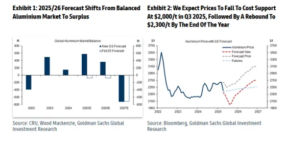 Πέραν του 2025, η άποψη της Goldman παραμένει ότι το όριο των 45,4 εκατομμυρίων τόνων στην κινεζική παραγωγή πρωτογενούς αλουμινίου, το οποίο αναμένει να επιτευχθεί στα τέλη του 2026, θα ωθήσει τελικά την παγκόσμια αγορά σε έλλειμμα, καθώς οι επενδύσεις σε μεταλλουργεία εκτός Κίνας καθυστερούν την παγκόσμια αύξηση της ζήτησης.
