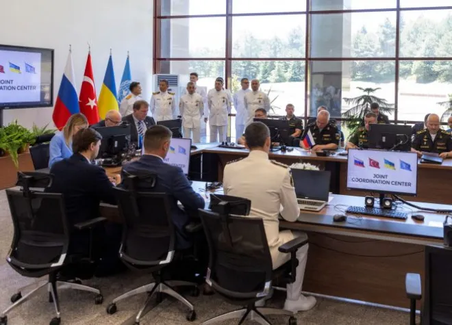 Το κοινό κέντρο συντονισμού (JCC), που έχει επιφορτισθεί με τον έλεγχο των εξαγωγών ουκρανικών σιτηρών μέσω της Μαύρης Θάλασσας, εγκαινιάστηκε επίσημα σήμερα στην Κωνσταντινούπολη, όπως προβλέπουν οι συμφωνίες που υπογράφτηκαν στις 22 Ιουλίου.