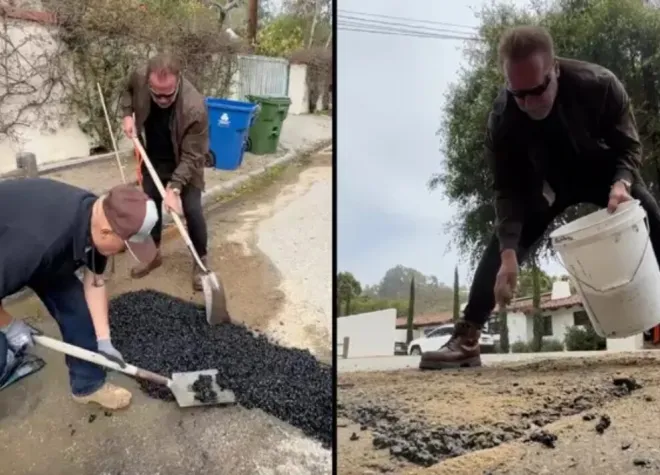 Ο ηθοποιός και πρώην κυβερνήτης της Καλιφόρνια δημοσίευσε προ ημερών βίντεο να γεμίζει κάτι που δήλωσε ότι ήταν μια «τεράστια λακκούβα» που ταλαιπωρούσε τους οδηγούς και τους ποδηλάτες στη γειτονιά του στο Λος Άντζελες για εβδομάδες.