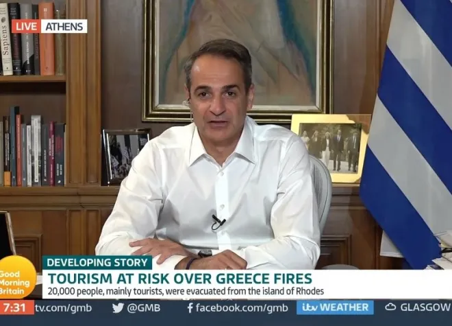 Μία εβδομάδα δωρεάν διακοπών στην Ρόδο θα προσφέρει η ελληνική κυβέρνηση, σε όσους τουρίστες αναγκάστηκαν να φύγουν νωρίτερα από το νησί λόγω των καταστροφικών πυρκαγιών, όπως εξήγγειλε ο Κυριάκος Μητσοτάκης μιλώντας στο βρετανικό κανάλι ITV.