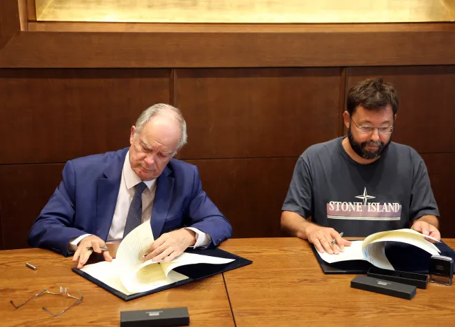 Ο Πρόεδρος της Βουλής κ. Κωνσταντίνος Τασούλας υπέγραψε το πρωί, σύμβαση για την ενεργειακή αναβάθμιση και συντήρηση του νεοκλασικού κτηρίου επί της οδού Θρασύλλου 18 στην Πλάκα, που στεγάζει το Νηπιαγωγείο της Βουλής των Ελλήνων, με τον εκπρόσωπο του μειοδότη κ. Νικόλαο Σορόλη.