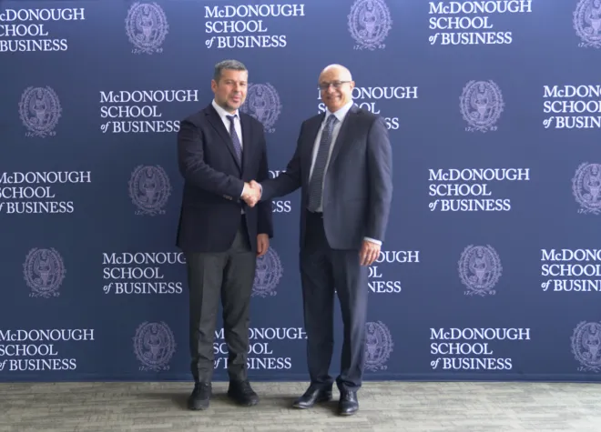 Το καινοτόμο Μεταπτυχιακό Πρόγραμμα στη Διαχείριση Περιβάλλοντος και Βιωσιμότητας, M.S. in Environment and Sustainability Management, που προσφέρεται από το McDonough School of Business σε συνεργασία με το Earth Commons Institute, συνδυάζει επιστημονικές γνώσεις με επιχειρηματικές αρχές, προκειμένου να προετοιμάσει τους αποφοίτους να προωθήσουν τους παγκόσμιους στόχους βιωσιμότητας. Το πρόγραμμα αξιοποιεί το παγκοσμίου φήμης διδακτικό προσωπικό του Georgetown, προκειμένου να προσφέρει στους φοιτητές τις ολοκληρωμένες γνώσεις και την πρακτική εμπειρία που απαιτούνται για τη διαχείριση της περιβαλλοντικής βιωσιμότητας των οργανισμών, με στόχο την αύξηση της αξίας τους και την ταυτόχρονη υποστήριξη του φυσικού περιβάλλοντος.