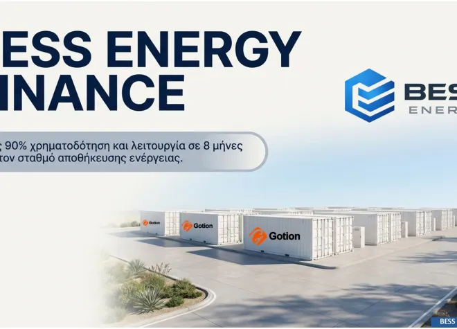 Η BESS ENERGY, εξουσιοδοτημένος διανομέας της Gotion High-Tech (στρατηγικός εταίρος του Group Volkswagen), ανακοινώνει την έναρξη του προγράμματος BESS ENERGY FINANCE. Πρόκειται για την πρώτη ολοκληρωμένη (turn-key) λύση στην ελληνική αγορά, η οποία δεν περιορίζεται στην προμήθεια εξοπλισμού, αλλά θωρακίζει το σύνολο της επένδυσης.