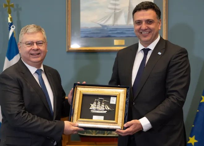 Η τελετή παράδοσης του νέου ψηφιακού εξοπλισμού πραγματοποιήθηκε χθες, Τετάρτη 11 Μαρτίου, στο υπουργείο Ναυτιλίας και Νησιωτικής Πολιτικής, παρουσία του υπουργού Ναυτιλίας και Νησιωτικής Πολιτικής, Βασίλη Κικίλια και του διευθύνοντος συμβούλου της HELLENiQ ENERGY, Ανδρέα Σιάμισιη.
