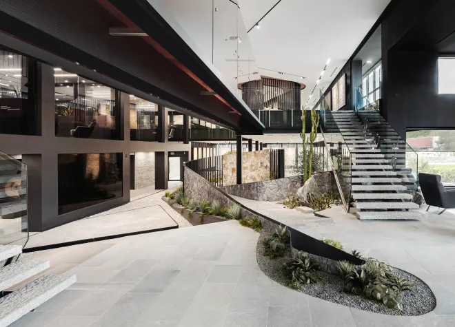 Το έργο, που αφορά την επέκταση των γραφείων και τη συνολική διαμόρφωση του showroom στην Καβάλα, αποτελεί ένα ενιαίο αρχιτεκτονικό αφήγημα που υπερβαίνει τα όρια μιας συμβατικής έκθεσης προϊόντων.