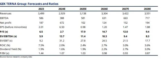 Σε συνέχεια των ισχυρών αποτελεσμάτων εξαμήνου και της νωρίτερα από το αναμενόμενο ενσωμάτωσης της Αττικής Οδού, η χρηματιστηριακή προχώρησε σε επικαιροποίηση των εκτιμήσεών της για την ΓΕΚ ΤΕΡΝΑ. Στο πλαίσιο αυτό, αναμένει EBITDA 0.4 δισ. για το 2024 και 0,7 – 0,8 δισ. για το 2028, καθώς θα έχουν μπει σε λειτουργία τα νέα έργα παραχωρήσεων.