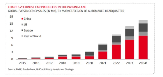Επιπλέον, οι πρόσφατοι δασμοί της ΕΕ στις κινεζικές μάρκες είναι πιθανό να μειώσουν το χάσμα τιμών μεταξύ των κινεζικών EV και των Ευρωπαίων ανταγωνιστών τους, αν και υπάρχει ο κίνδυνος οι κινέζοι πολιτικοί να αντεπιτεθούν και να εμποδίσουν τις πωλήσεις αυτοκινήτων της ΕΕ στην Κίνα. Αν και η UniCredit δεν αναμένει καμία κλιμάκωση των δασμών μεταξύ ΕΕ και Κίνας, οι κινεζικές μάρκες είναι πιθανό να αυξήσουν την τοπική παραγωγή στην ΕΕ για τις ευρωπαϊκές αγορές για να αποφύγουν τους δασμούς εισαγωγής. Τα προστατευτικά εμπορικά μέτρα της ΕΕ μπορεί επίσης να υποστηρίξουν την nearshoring (τοπική) παραγωγή αυτοκινήτων, η οποία θα μπορούσε να είναι ιδιαίτερα σημαντική για τις οικονομίες της Κεντρικής και Ανατολικής Ευρώπης, καθώς στοχεύουν στην προσέλκυση άμεσων ξένων επενδύσεων μέσω χαμηλότερου κόστους εργασίας και εταιρικών φόρων.