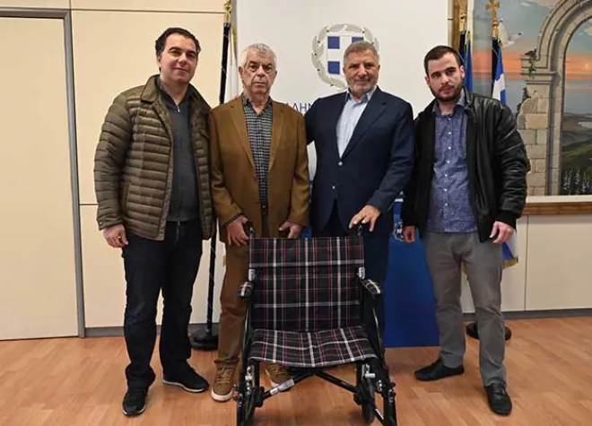 Η παράδοση έγινε στο πλαίσιο της ανταποδοτικής δράσης «Μην ξεχνάς το καπάκι να κρατάς» μέσω της οποίας από τα καπάκια που συλλέγονται και ανακυκλώνονται προσφέρονται αναπηρικά αμαξίδια σε άπορα άτομα που τα έχουν ανάγκη.