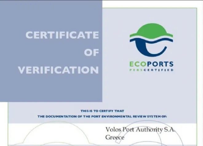Ο Οργανισμός Λιμένος Βόλου, έλαβε και φέτος το πιστοποιητικό PERS (Port Environmental Review System), διαμέσου του ECOPORTS του Οργανισμού ESPO (European Sea Port Organization) για δύο χρόνια, μέχρι τον Απρίλιο του 2025, με φορέα πιστοποίησης την Lloyd’s Register Rotterdam.