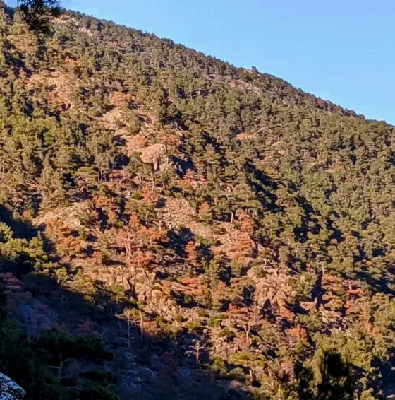 Όπως σημειώνουν κτηνοτρόφοι αλλά και εθελοντικές ομάδες που όπως η Άμπελος, το πρόβλημα ξήρανσης των πεύκων από το ξυλοφάγο έντομο συναντάται σε περιόδους ανομβρίας και ξηρασίας και αντιμετωπίζεται με άμεση κοπή και καύση των προσβεβλημένων δέντρων. Καύση στην παρούσα φάση της αντιπυρικής περιόδου είναι αδύνατον να γίνει.