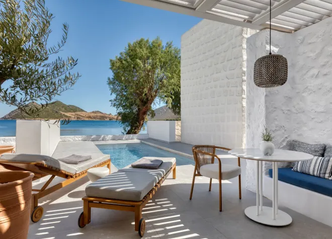 Οι 33 νέες σουίτες, που περιλαμβάνουν παραθαλάσσια καταλύματα και μονάδες με ιδιωτικές πισίνες, καθώς και η αναβάθμιση του παλαιού ξενοδοχείου σχεδιάστηκαν από τα γραφεία Stylianidis Vaggelis Architects και Anastassiadis Architecture & Design, εστιάζοντας στην ιδιωτικότητα, την τοπική αρχιτεκτονική και την αρμονική ένταξη στο φυσικό περιβάλλον του κόλπου του Γροίκου.